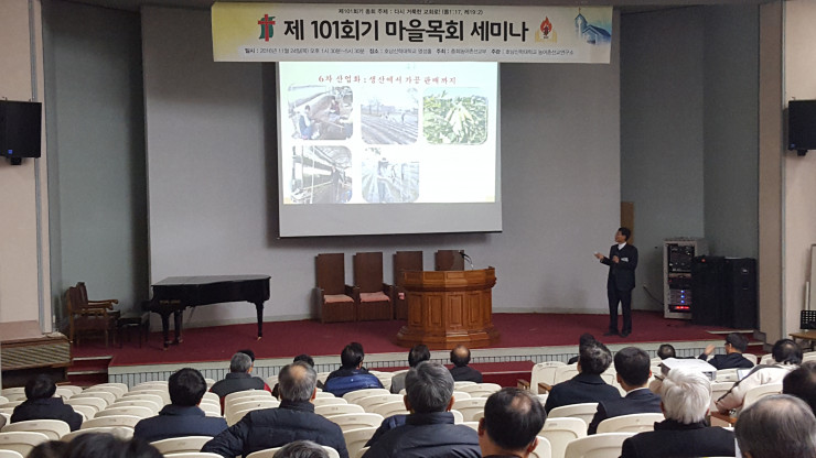 일시 : 2016.11.24.(목) 오후1시~7시장소 : 호남신학대학교내용 : 마을목회 모범사례강의 - 정경옥 목사(화순신실한교회) 김인선 목사(담양개동교회) 오창우 목사(한남제일교회) 이기성 목사(진주초원교회) 마을목회의 신학적 정리(황홍렬 교수/부산장신대학교) 종합토론(사회:강성열 교수)
