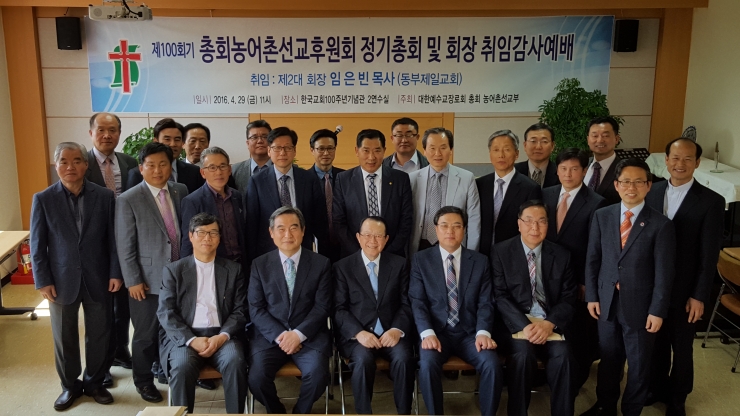 일시 : 2016.04.29(금)장소 : 한국교회100주년기념관 2연수실참석 : 후원회원, 총회 농목협 임원, 총회 농촌선교센터 운영위원,이사 (30여명)예배 : 인도 김수원 목사, 기도 임상윤 장로, 설교 증경총회장 안영로 목사, 축도 김정운 목사농어촌선교후원회 회장 취임: 임은빈 목사(동부제일교회)