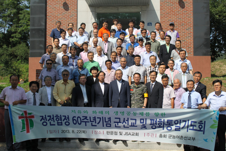 1. 일시 : 2013년 8월 22일(목) 2. 장소 : 판문점, 제3땅굴, 도라전망대, JSA교회3. 참석 : 65개노회 군농어촌선교부 부장(총 71명)4. 내용 : 정전협정 기념예배, 치유와 화해, 평화통일 기도회, 분단현장방문 등