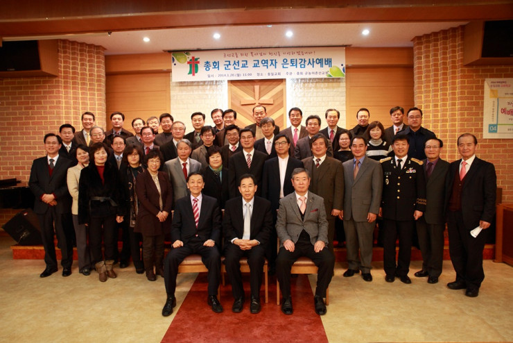 제98회기 총회 군선교교역자 은퇴감사예배1. 일 시 : 2014년 1월 20일(월) 오전 11시2. 장 소 : 동일교회(김휘현 목사)3. 참 석 : 은퇴 교역자 5명(강군열, 강응규, 정국순, 정종림, 함준호 목사) 총회 군농어촌선교부 실행위원 군종목사단 중앙위원 군선교교역자 임원 외4. 내 용 : 예배, 총회장 감사패 전달, 친교 행사5. 후 원 : 동일교회