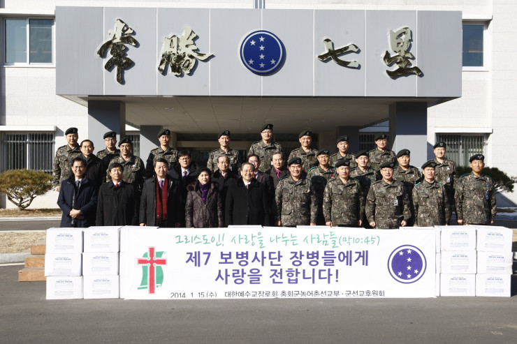 총회장 전방부대 방문 및 '사랑의 온차' 전달 행사1. 일시 : 2014년 1월 15일(수) 11:00-15:002. 장소 : 제 7보병사단 사령부, 칠성전망대3. 참석 : 총회장 및 총회 임원, 부서임원, 군선교후원회 임원 등4. 내용 : 위문품 전달(사랑의 온차: 소망교회 후원, 부대소개, 칠성전망대 견학, GOP 근무병 격려)