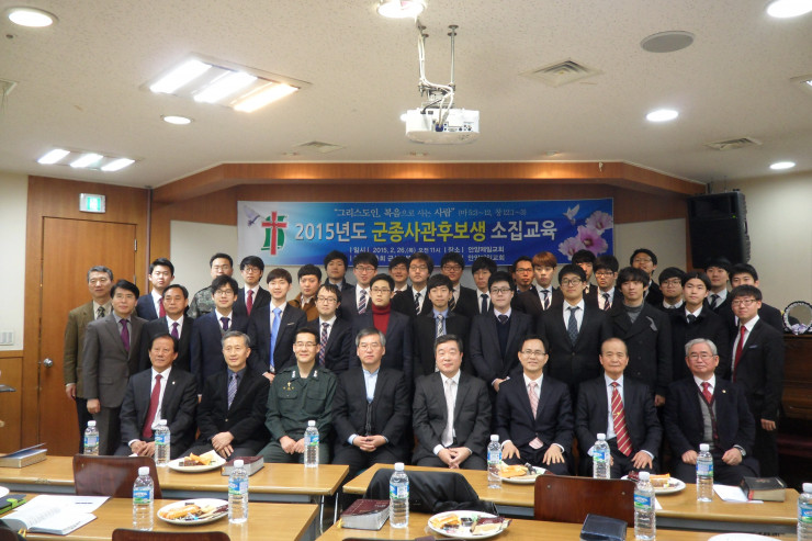 일시 : 2015년 2월 26일(목) 오전 11시장소 : 안양제일교회후원 : 안양제일교회(홍성욱 목사)참석 : 총회소속 군종사관후보생 47명
