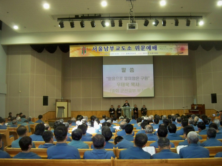 일시 : 2015년 3월 5일(목) 오후 2시 50분교정시설 : 서울남부교도소(이인철 목사)참석인원 : 450여명후원 : 세이브존 오렌지재단 아트컴퍼니