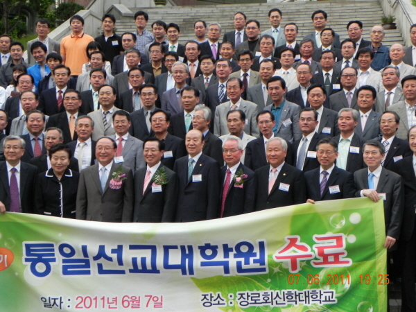 총회남북한선교통일위원회(위원장 박광식 장로)와 장로회신학대학교 남북한평화신학연구소(소장 노영상 교수)가 공동 주관한 통일선교대학원 제1기 수료예배가 6월 7일 장로회신학대학교 음악관 연주홀에서 드려졌다.  수료생 124명은 총회장 명의의 수료증을 수여받고 한반도 통일에 대한 전문적인 지식을 가지고  북한선교 활성화에 힘쓰기로 다짐했다.   이날 설교는 부총회장 박위근 목사님이, 축사는 장로회신학대학교 총장 장영일 목사님이 해주셨다.
