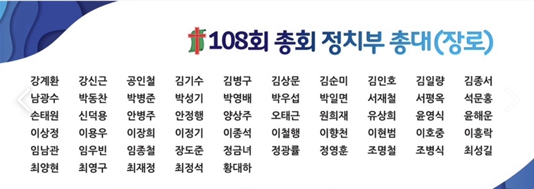 제108회 총회 정치부 총대 명단을 올려드립니다.