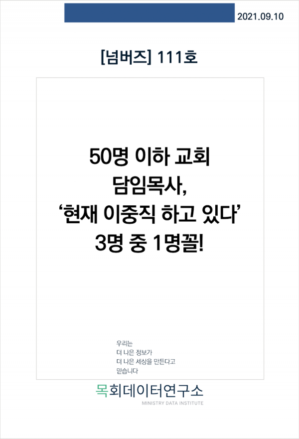 [기타사역 자료] [넘버즈-111] 50명 이하 교회 담임목사 현재 이중직 하고 있다 3명 중 1명꼴