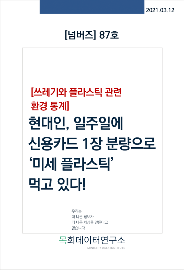 목회데이터연구소 [넘버즈] 제 87호는 쓰레기 문제와 함께 날로 심각해져 가는 플라스틱 문제를 다루었습니다.