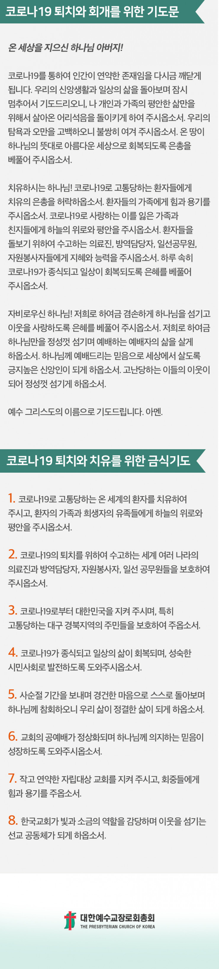 코로나19 제6차 교회대응지침 및 금식기도안내