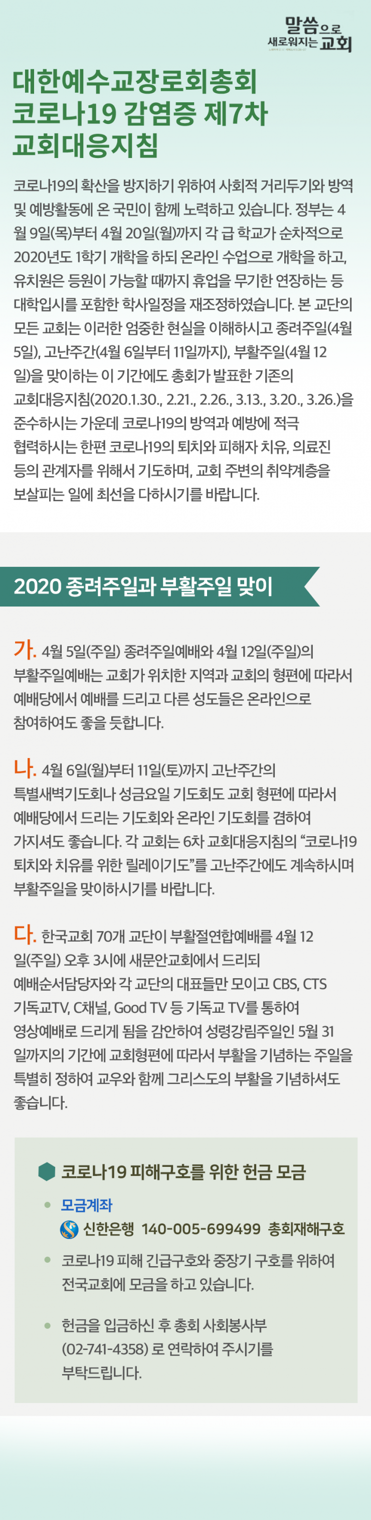 코로나19 제7차 교회대응지침 및 금식기도안내