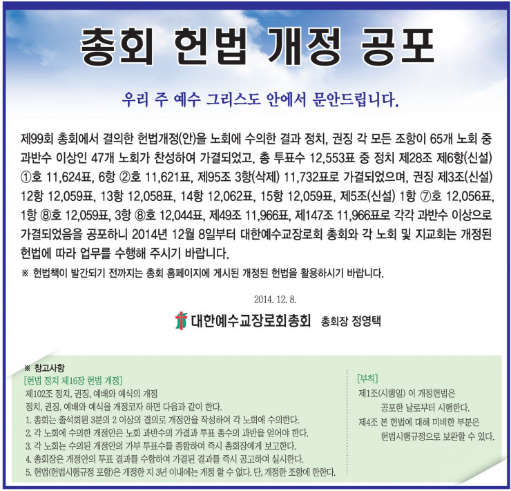 총회 헌법 개정 공포