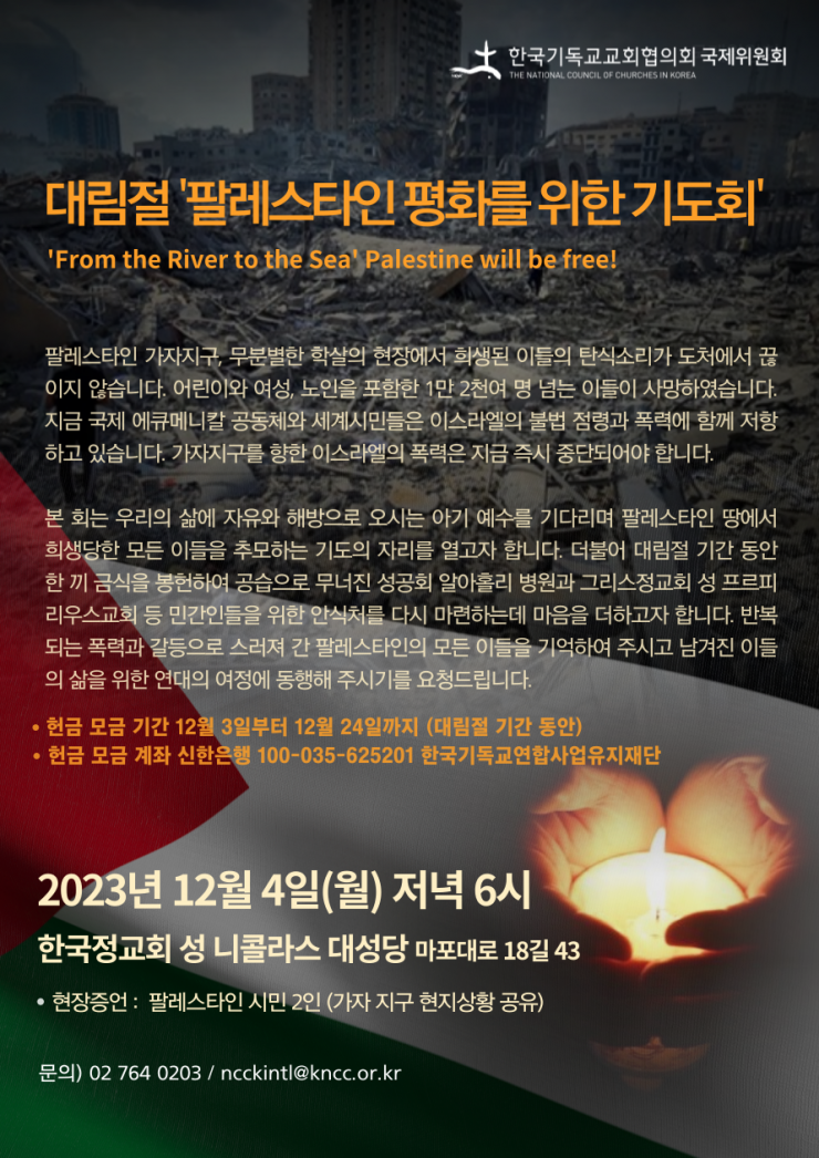 [NCCK] 대림절 ‘팔레스타인 평화를 위한 기도회’ 안내
