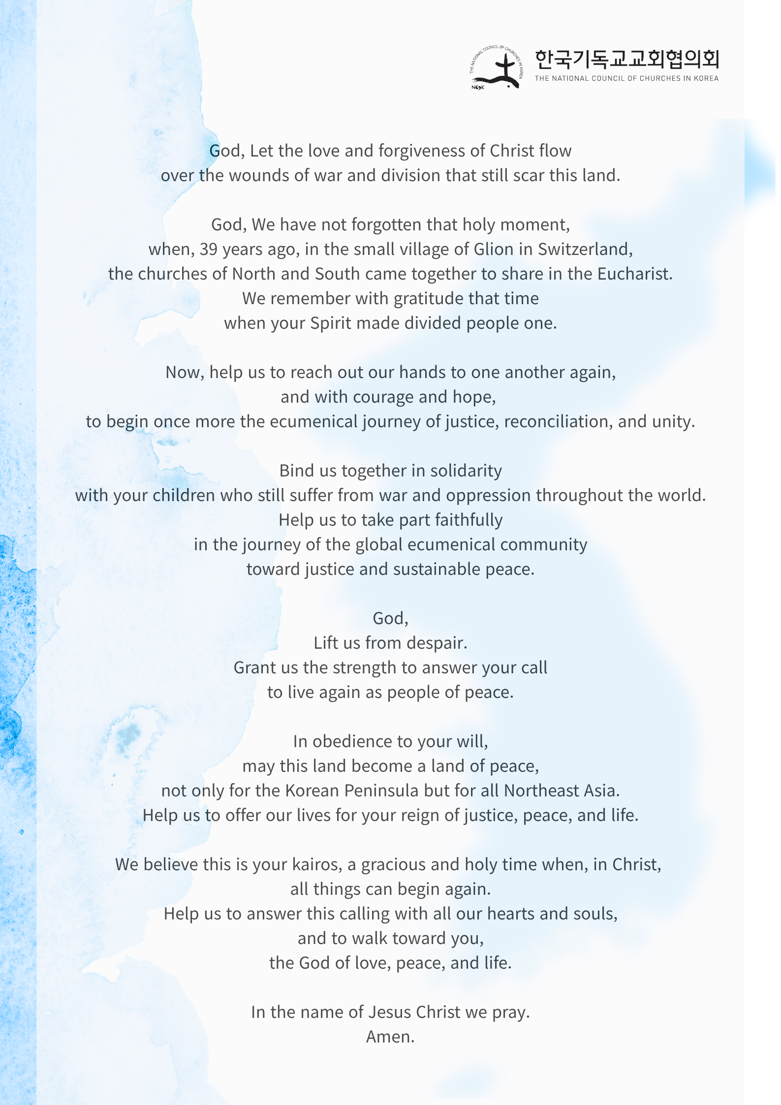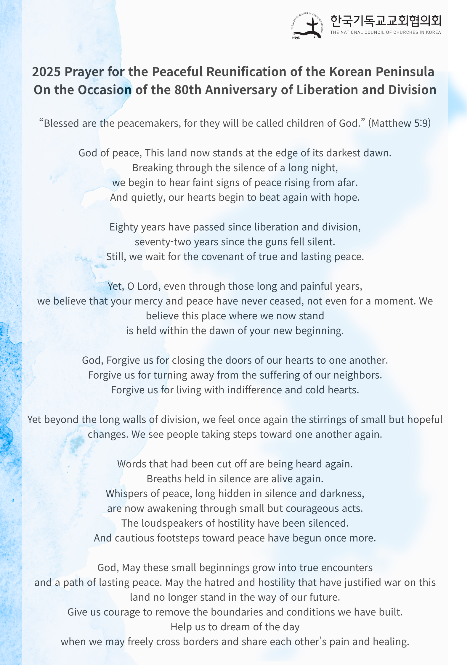 - NCCK) 2025 Prayer for the Peaceful Reunification of the Korean Peninsula [pdf / docx]