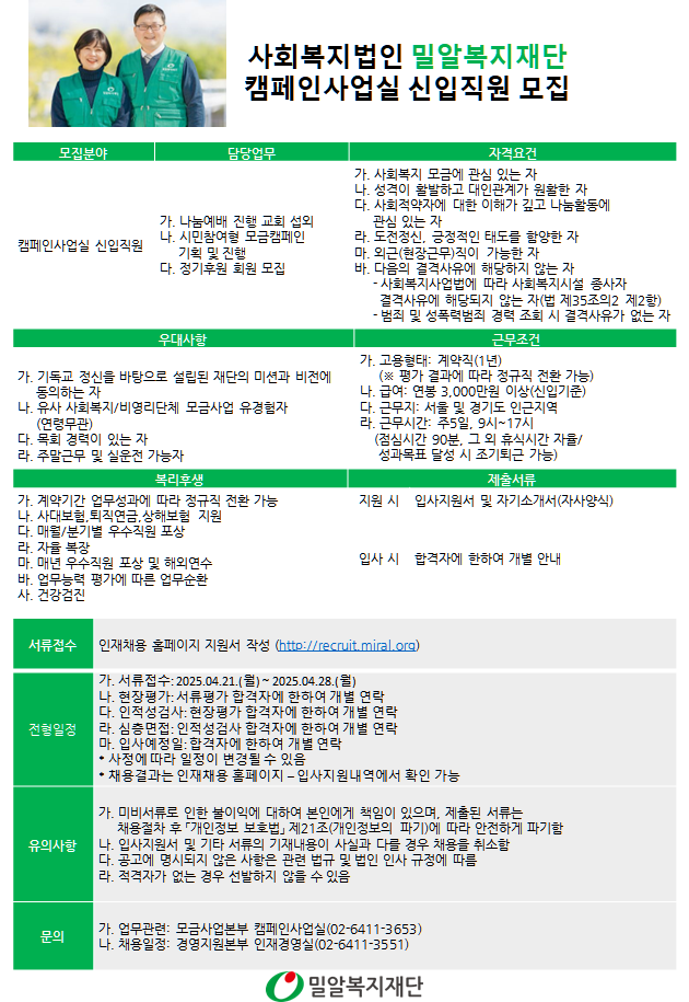 사회복지법인 밀알복지재단 캠페인사업실 직원 채용공고