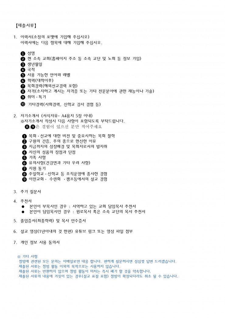 교단교역자 청빙