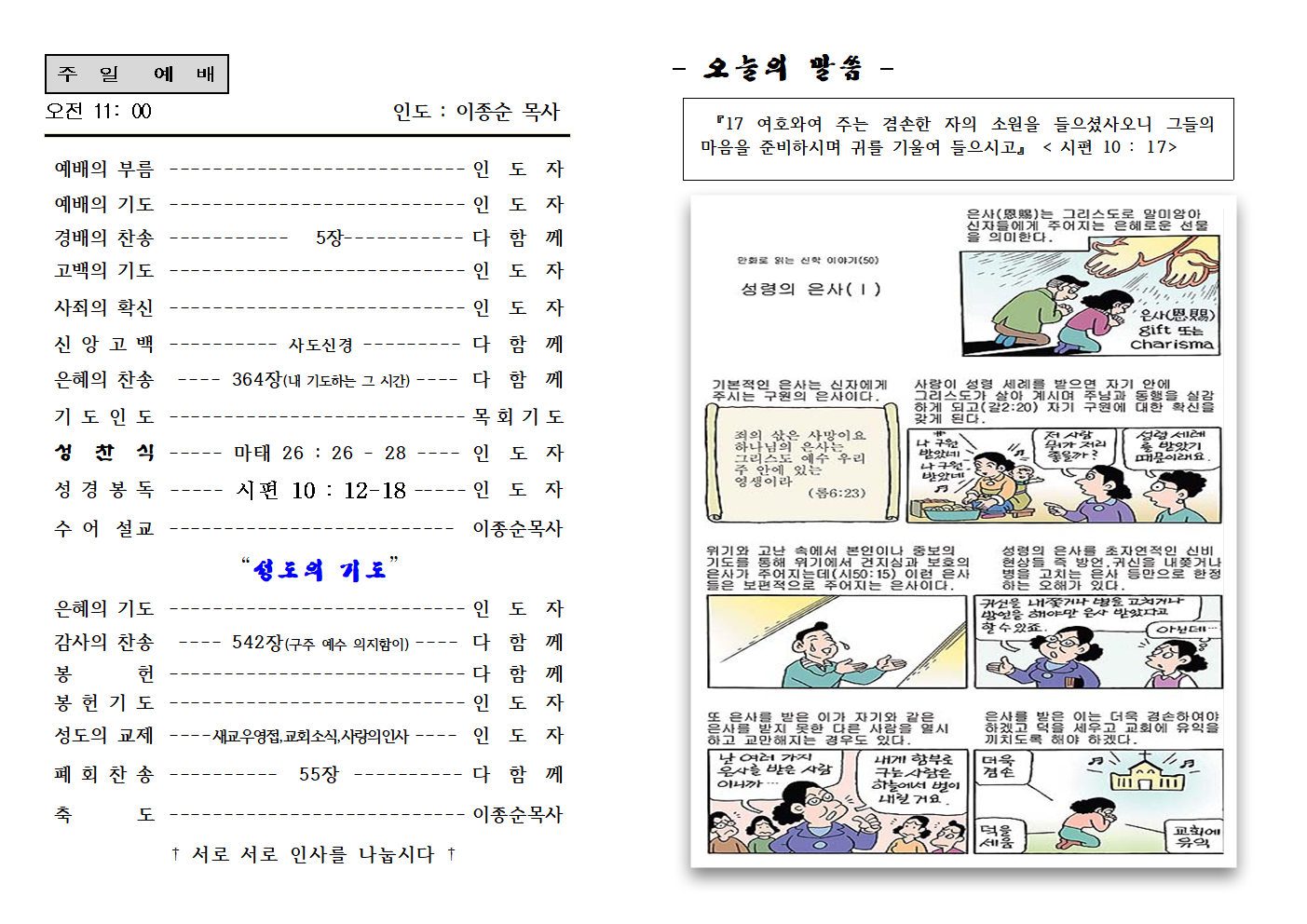 문의 010-8783-3660 현재 담임목사