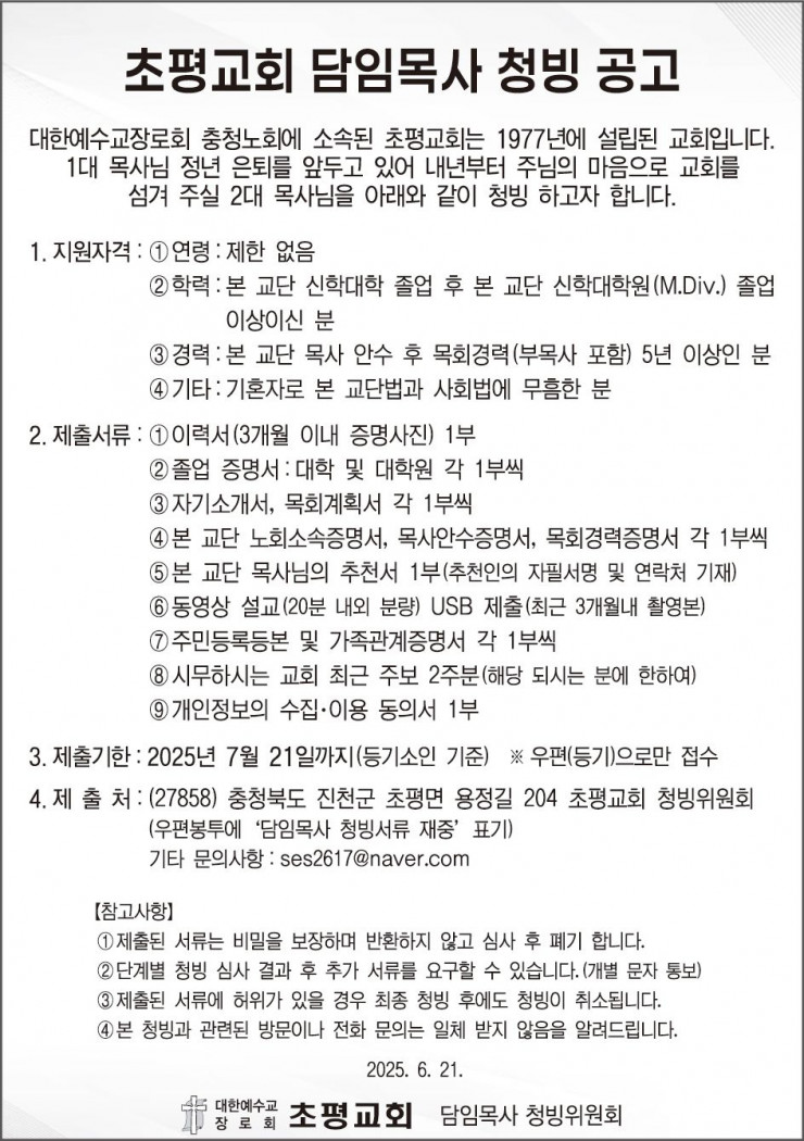 대한예수교장로회총회의 교단교역자 청빙게시판 입니다.