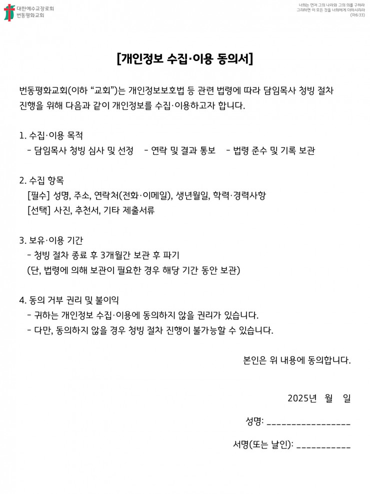 교단교역자 청빙
