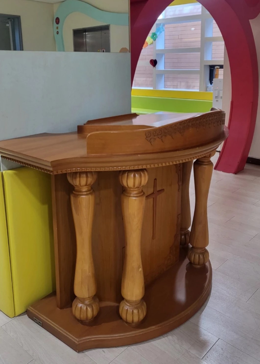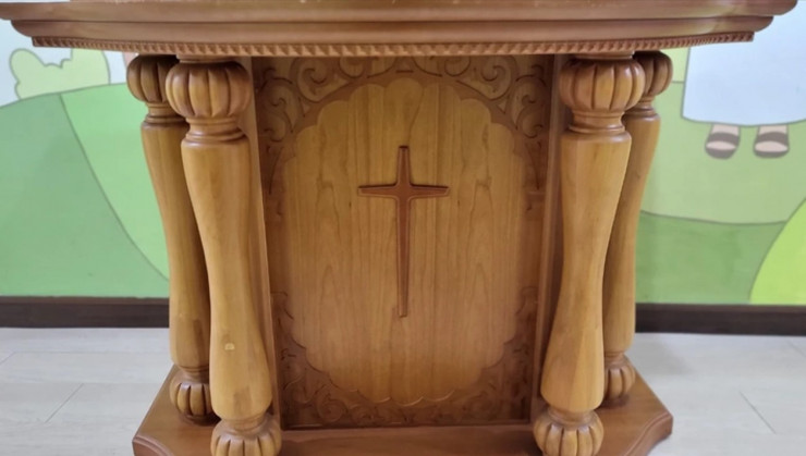 원목으로 만들어진 깨끗한 강대상입니다
