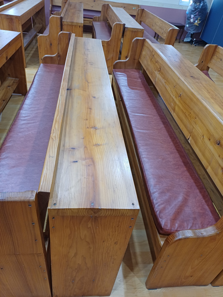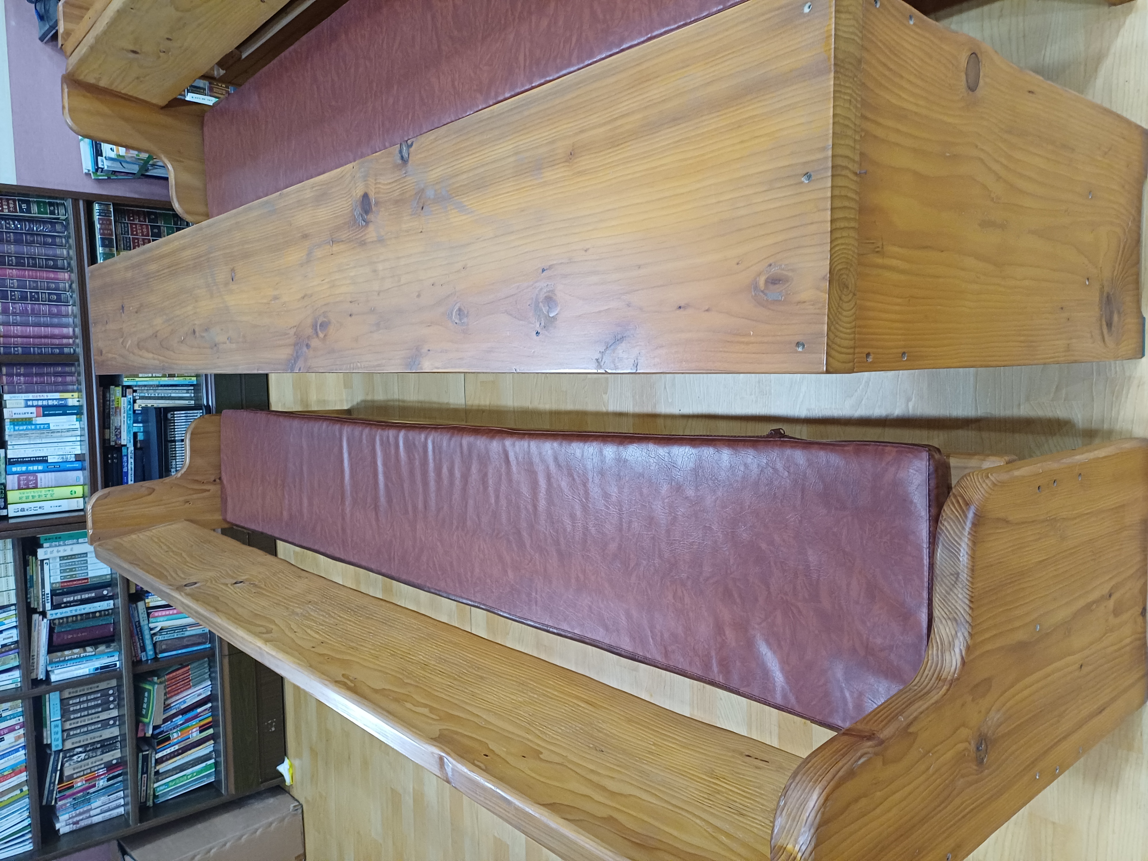 장의자는 주문제작한 의자로 성경책을 놓는 곳을 넓게 만들었습니다. 제작한 지는 오래 되었지만 튼튼합니다. 자료 사진을 올려 놓습니다.