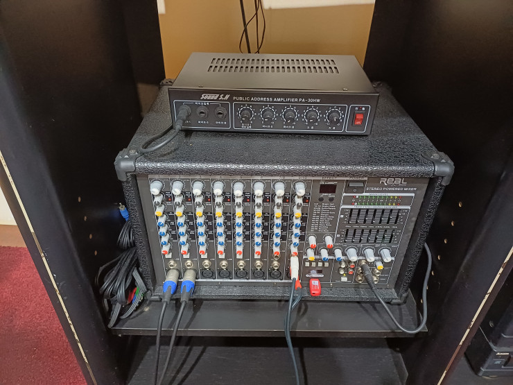 장의자와 강대상, 소강대상, 탁구대, 산업용 진공청소기, 앰프, 스피커를 나누려고 합니다.