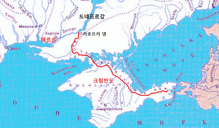 1954년 소련의 서기장 '니키타 흐루쇼프'(Nikita Sergevevich Khrushchev)가 운하건설 계획을 고려하여, 소련 내부의 행정구역 조정으로 크림반도를 러시아에서 우크라이나로 편입시켰고, 이후 1957년부터 우크라이나 드니프로 강의 물을 크림반도로 끌어들이는 계획인 ‘북 크림 운하’(North Crimean Canal)의 건설이 시작되었다.